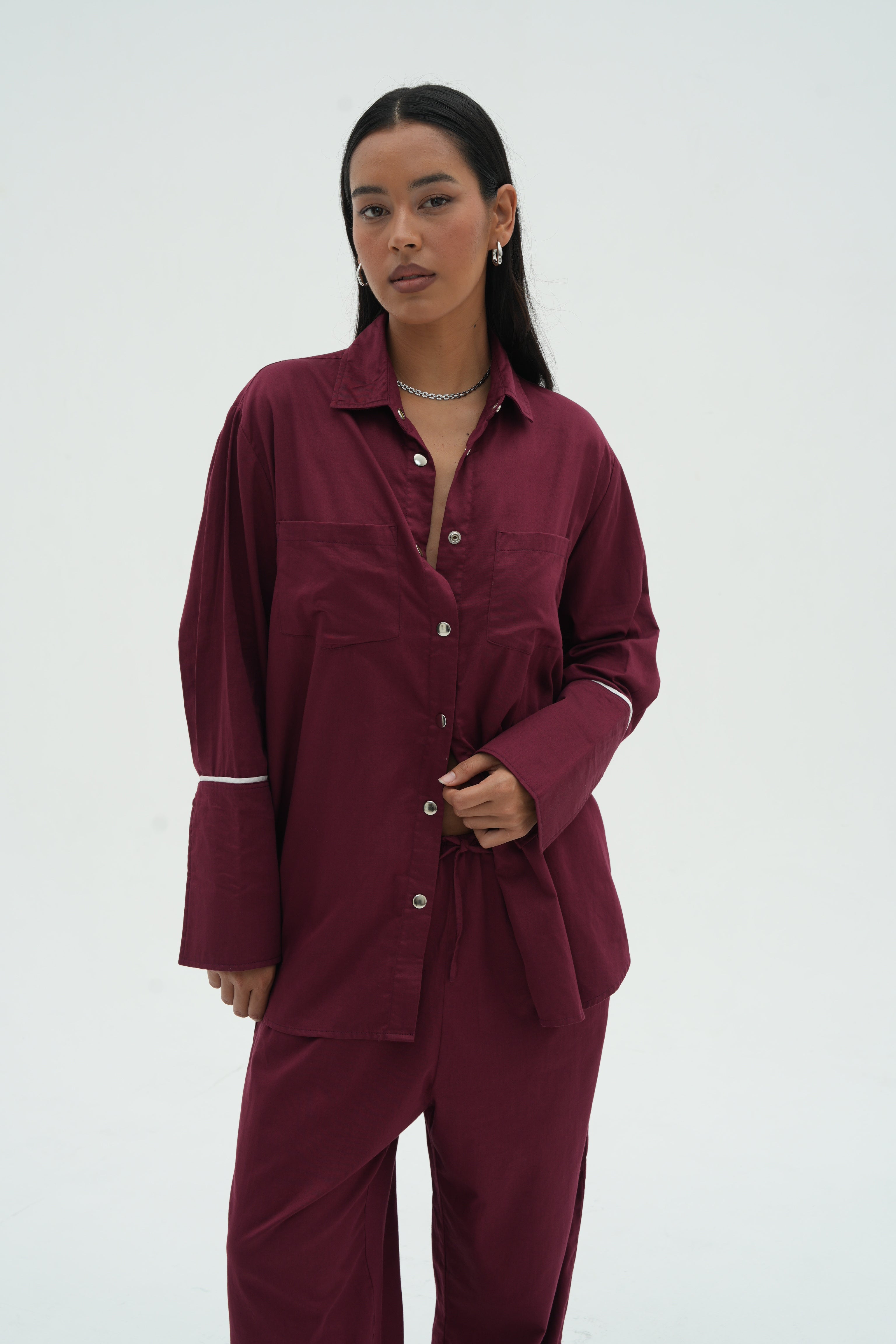 The Dre Long Sleeve is crafted for subtle statement everyday wear. Crafted from a lightweight cotton poplin, this shirt features and exaggerated sleeve cuff with elevated ivory contrasting along with bold silver buttons to complete. Naturally oversized for comfort.