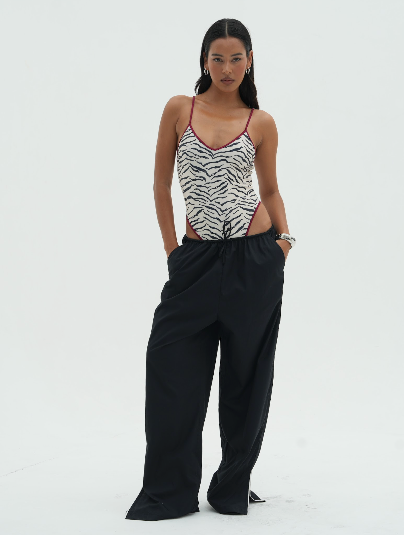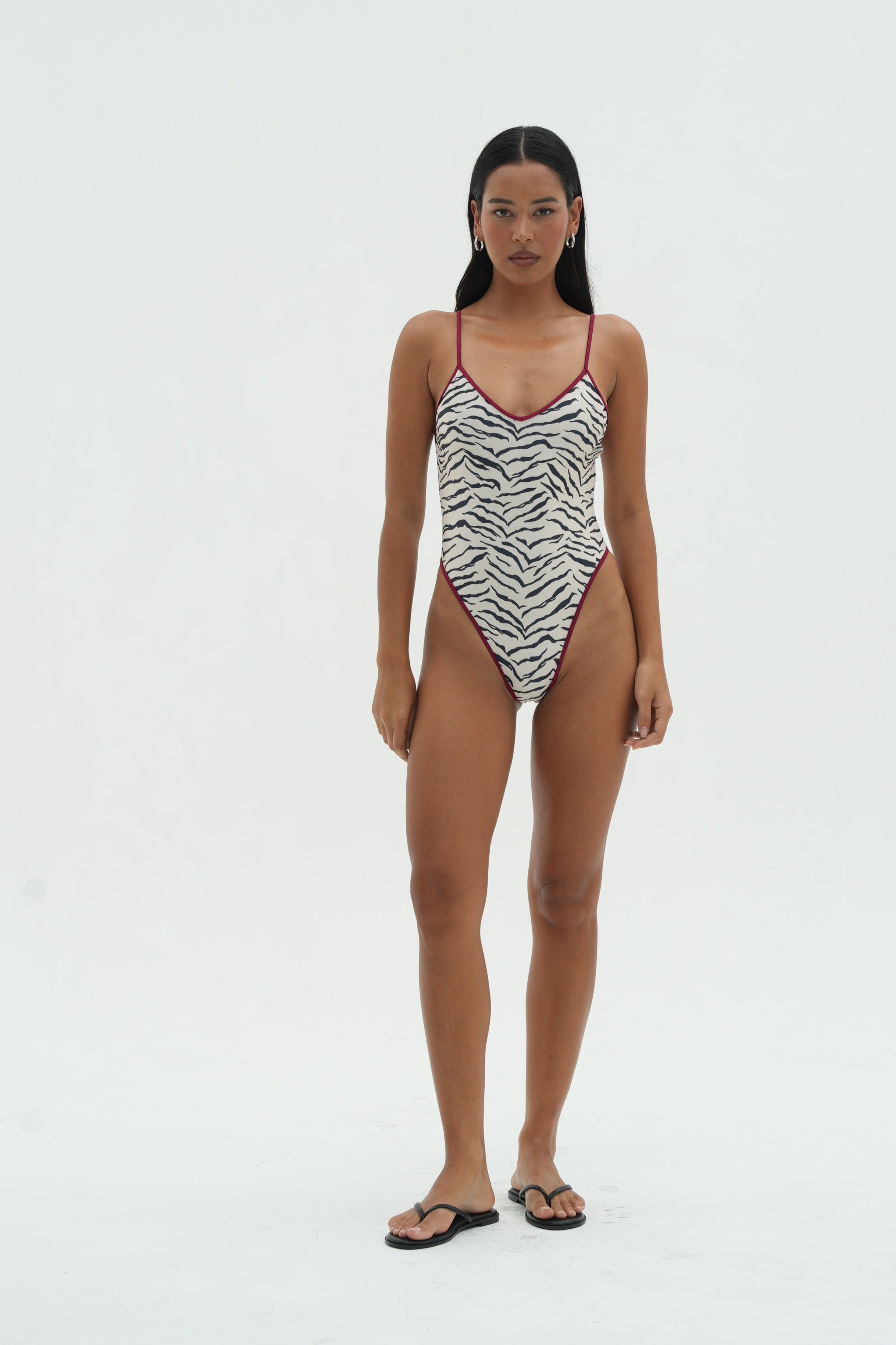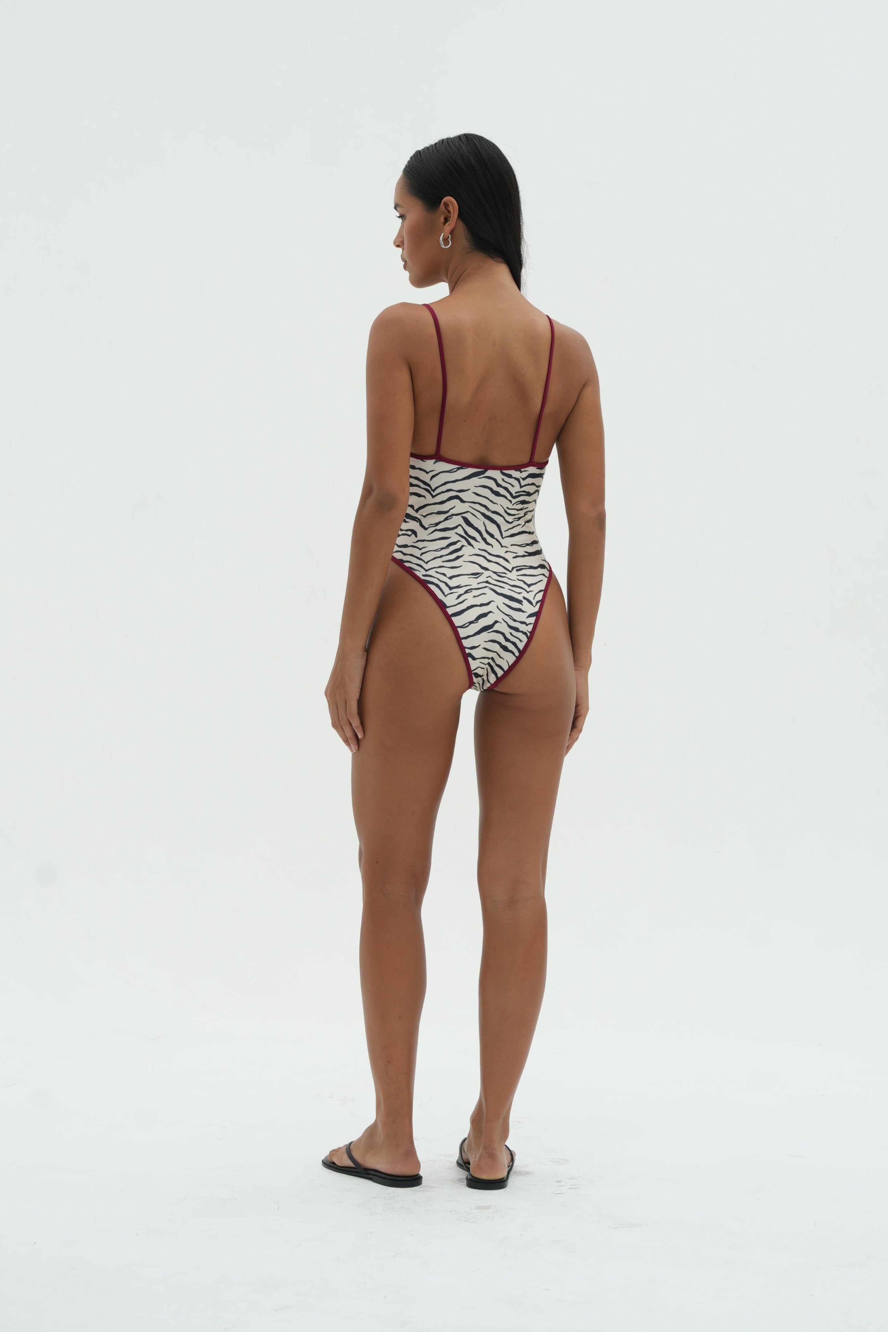 A minimalist silhouette with a sensual edge. Clean lines, slim straps, and contrast trims that frame the body with confidence. Double lined for support and a luxe feel. Supportive and flattering, with a V neckline that enhances the bust. Medium coverage keeps it effortless, feminine, and refined made to move with you from golden shorelines to moonlit swims.